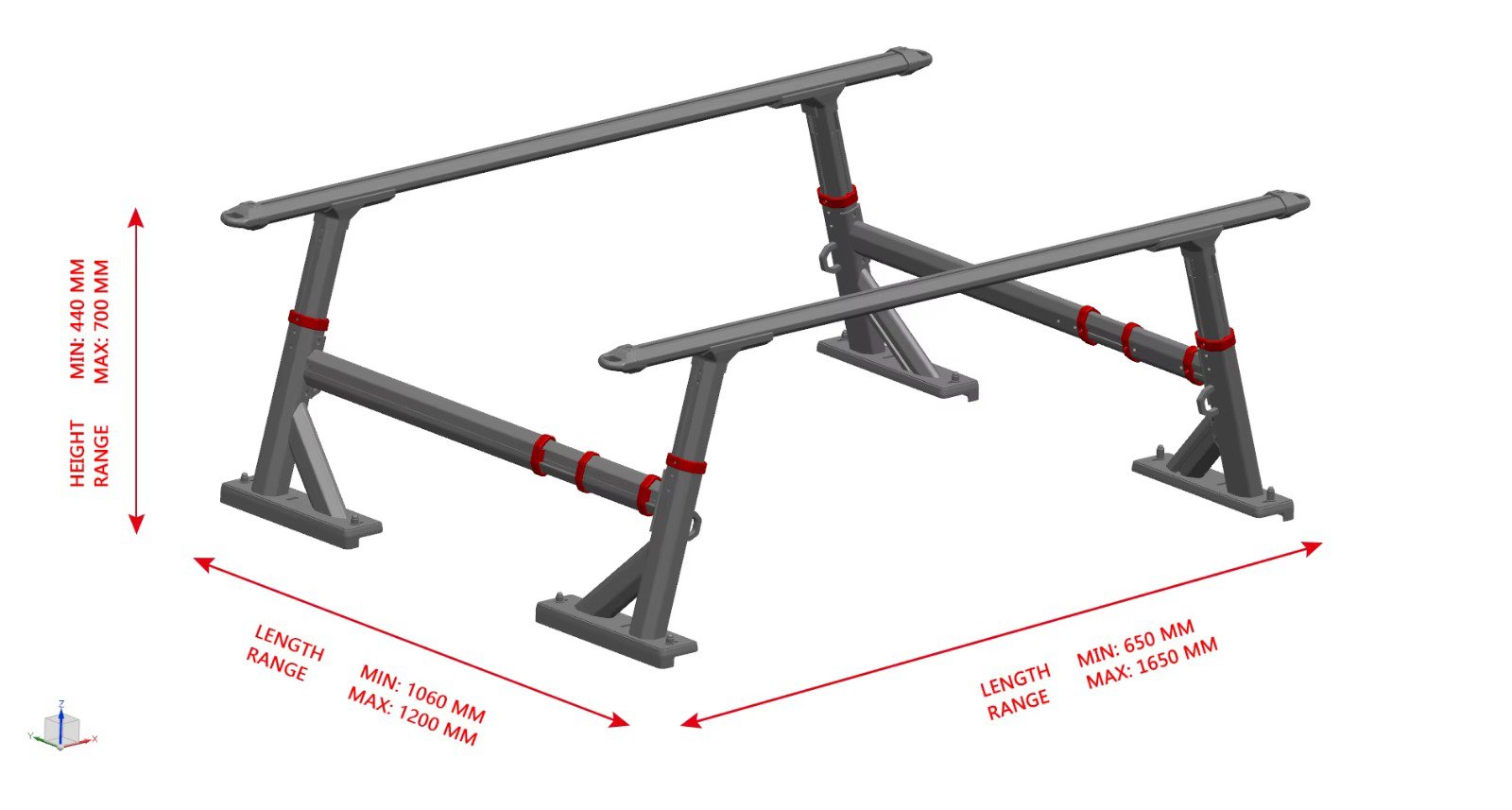 מוצר זה הוא פתרון הובלה חזק ומתכוונן המותקן על ארגז המטען של טנדרים ומאפשר נשיאת ציוד כבד, כולל אוהלי גג, גגונים ואביזרים שונים.