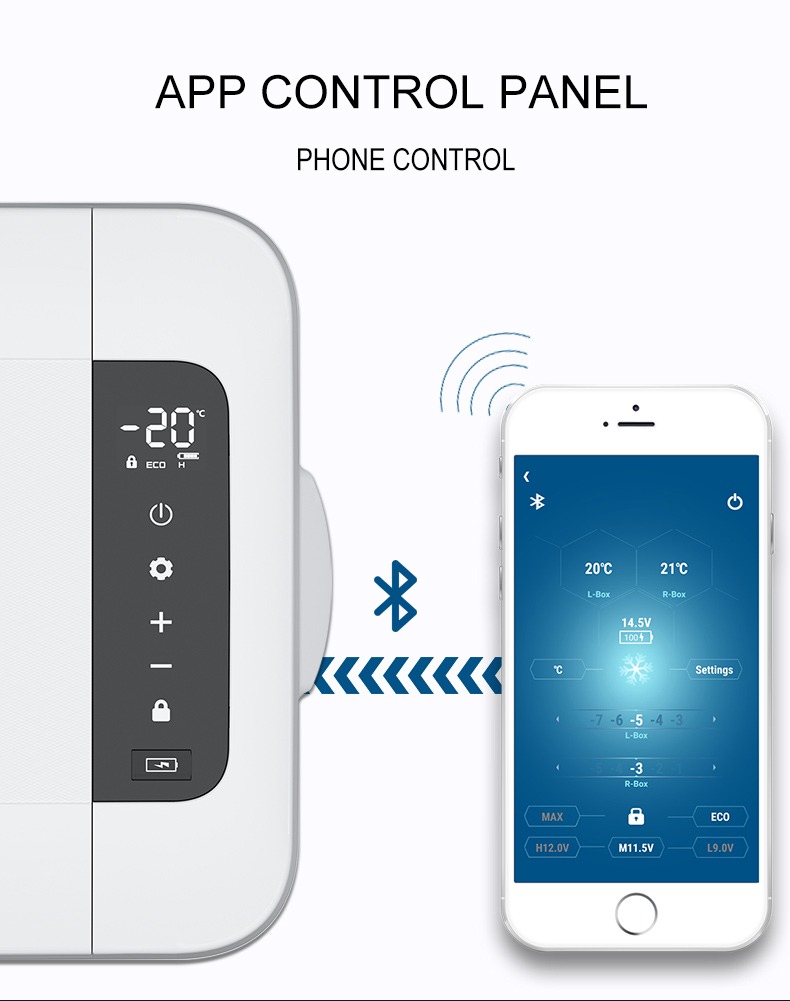 מקרר מקפיא דגם CF45 ליטר, מדחס איכותי מגיע עד 20- נשלט באמצעות אפליקציה,תואם ל12/24/220